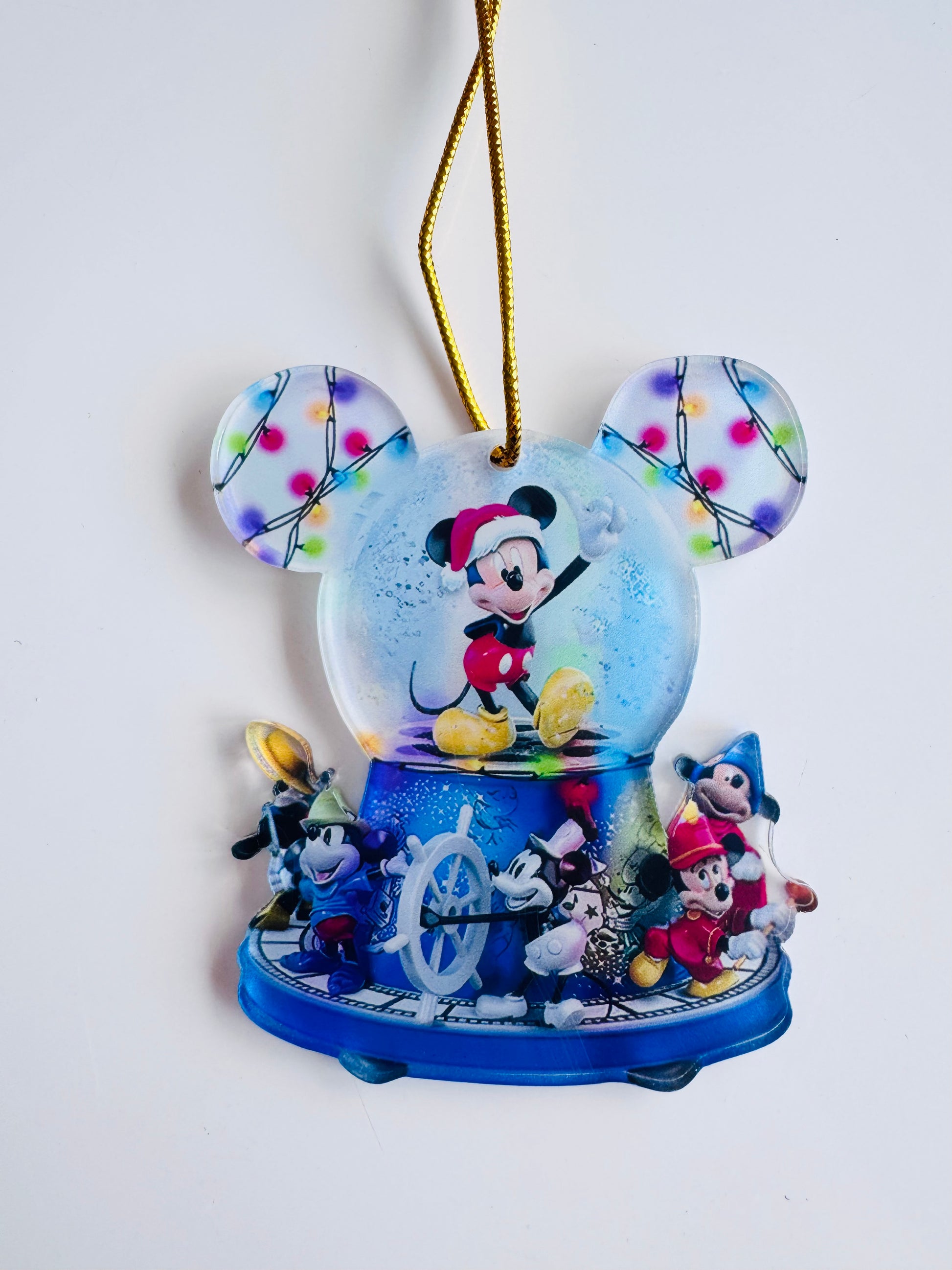 Inside, a festive figure stands atop a golden gift box, surrounded by swirling snowflakes. Around the base, beloved friends Minnie, Donald, Goofy, and Pluto gather in classic holiday style. Colourful lights wrap the ears, and a nautical-themed base adds a playful twist. This ornament is a celebration of friendship, nostalgia, and the kind of cheer only timeless characters can bring.