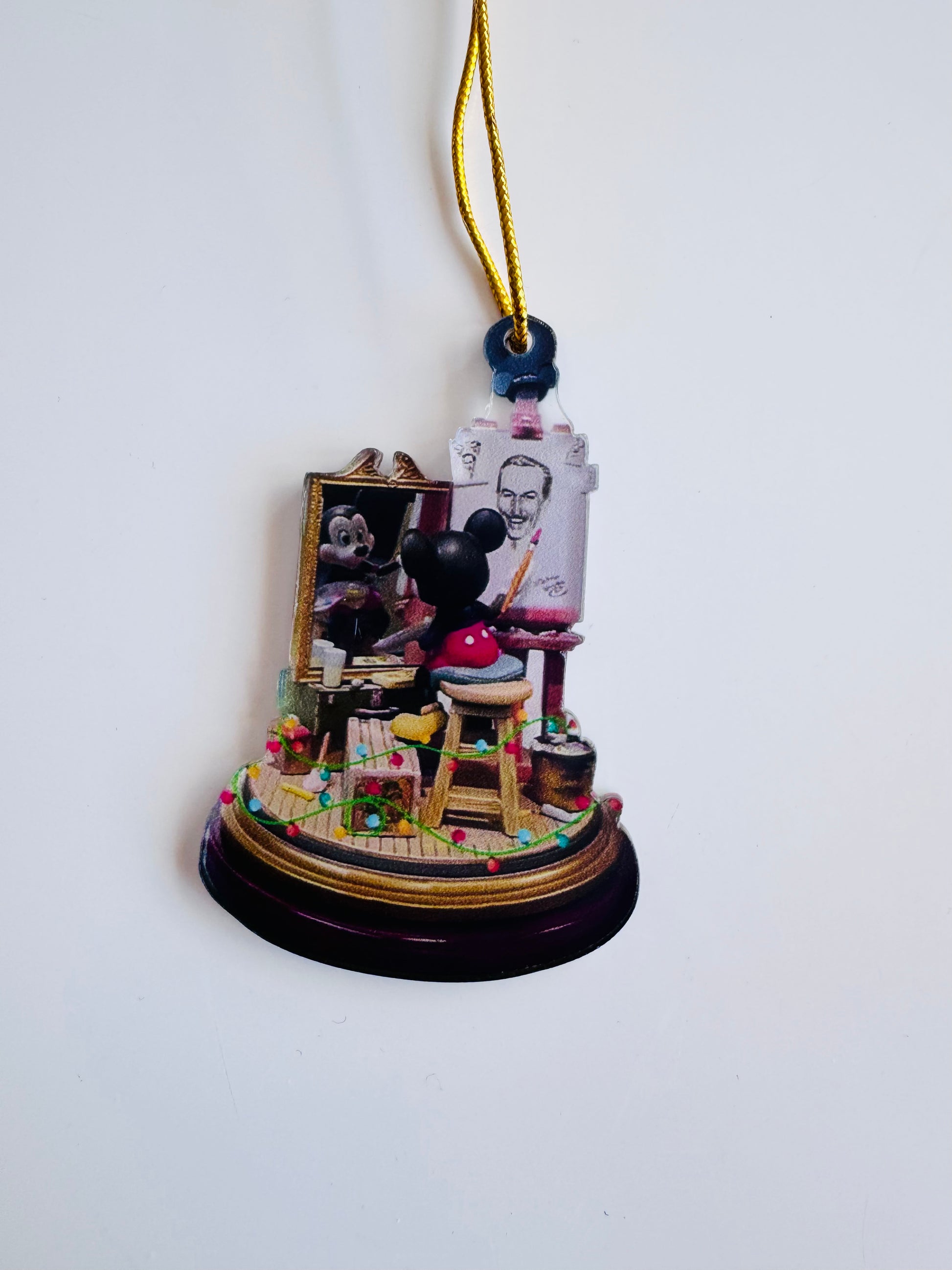 Celebrate the magic behind the mouse with this heartfelt ornament featuring a beloved character painting a self-portrait only the canvas reveals a touching tribute to Walt Disney himself.